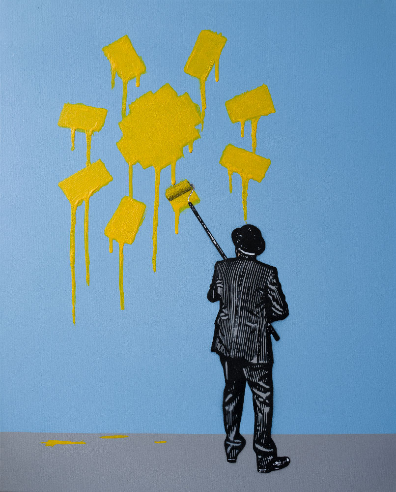 Aérosol et pochoir sur toile