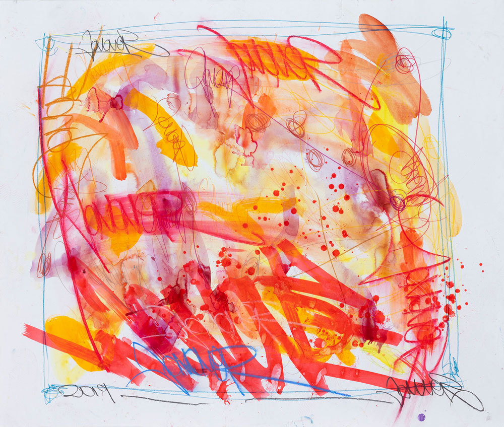 Encre, crayon gras et pastel sur toile