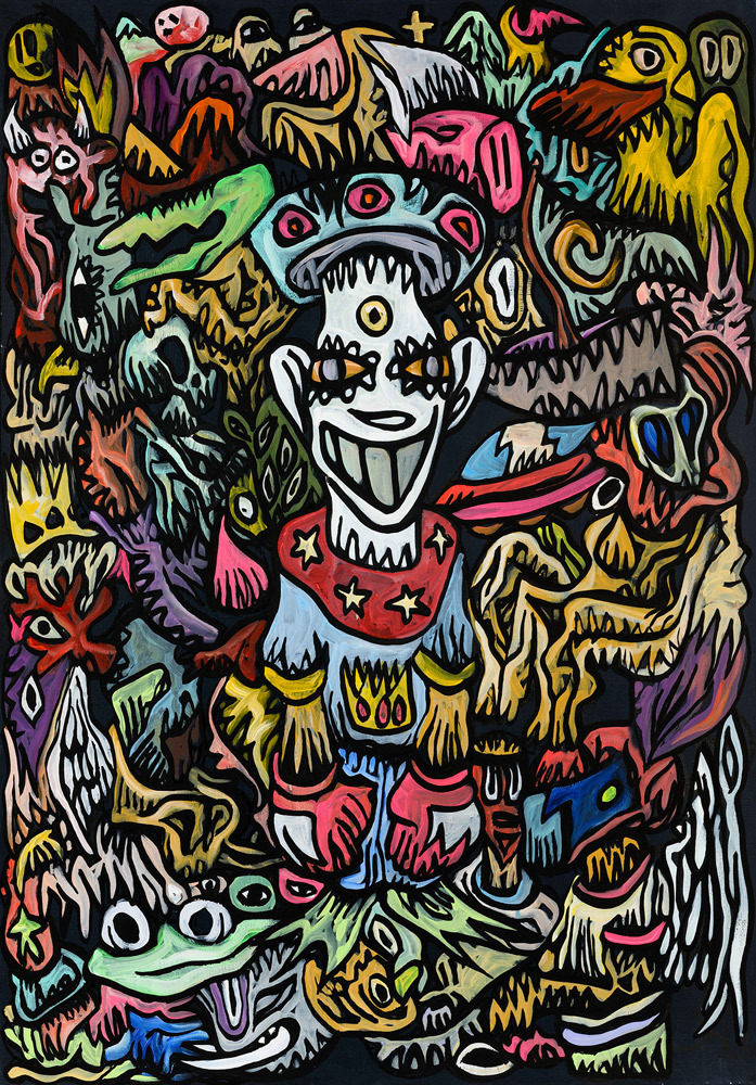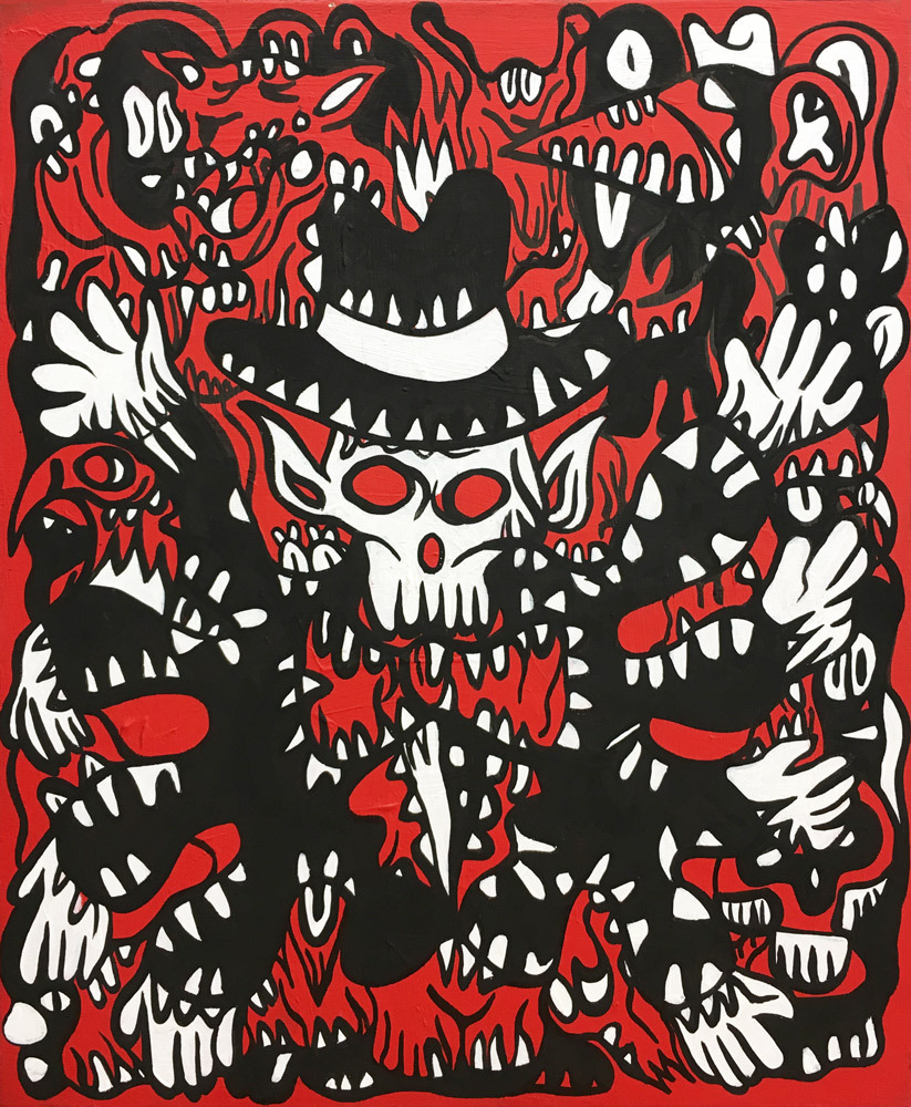 Encre, aérosol, crayon gras et pastel sur papier marouflé sur toile