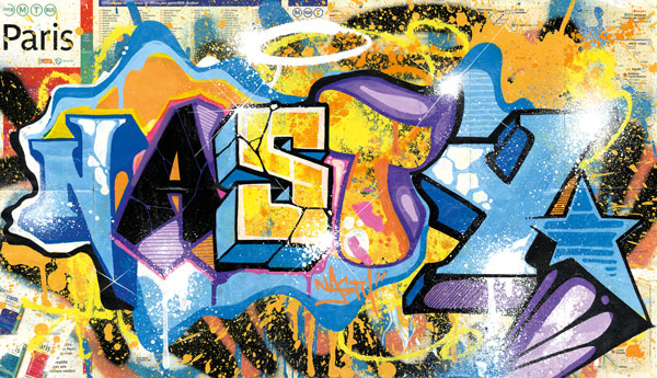 Peinture aérosol sur plaque de métro