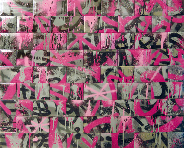 Peinture aérosol sur carreaux de faïence blanche